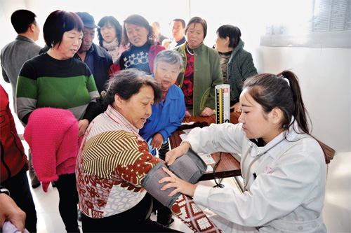 3月7日上午,代縣團(tuán)縣委在上館鎮(zhèn)橙草溝村舉行“傳承雷鋒精神,投身脫貧攻堅(jiān)”志愿服務(wù)活動(dòng)啟動(dòng)儀式,旨在動(dòng)員全縣各級(jí)團(tuán)組織和廣大團(tuán)員青年開展為期一個(gè)月的以“傳承雷鋒精神,投身脫貧攻堅(jiān)”為主題的“送溫暖、獻(xiàn)愛心”、“送金融”、“送科技”、“送文明健康”系列學(xué)雷鋒志愿服務(wù)活動(dòng)。啟動(dòng)儀式現(xiàn)場,共收到全縣捐贈(zèng)的課桌凳1900套、圖書1126冊(cè)、文具320件、衣物1063件、書包33個(gè)、體育用品14件,將分發(fā)到貧困地區(qū)農(nóng)村和學(xué)校。圖為志愿者為民群眾義診。(石俊文 攝)