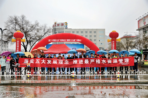 3月22日是第24屆“世界水日”,也是第29屆“中國(guó)水周”,市水利局、水資辦、綠色地球協(xié)會(huì)冒著瀝瀝小雨聯(lián)合在城區(qū)日月廣場(chǎng)舉行紀(jì)念活動(dòng)。(馬月林 攝)