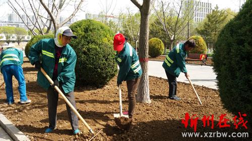 春暖花開,4月13日,忻州市人民公園的園林養(yǎng)護人員忙著翻地、施肥,為不同花期的育苗做準備。忻州市人民公園是我市城市文明的一大場所,為全方位提升人均環(huán)境質(zhì)量和城市競爭力,給廣大市民創(chuàng)造一個文明、衛(wèi)生、安全、和諧的休閑游樂環(huán)境,園林養(yǎng)護人員一年四季不斷地為公園綠化服務(wù),確保公園內(nèi)的花、草、樹都能如期開花、結(jié)果。(李濤 攝)