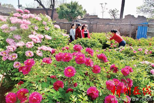 近年來,原平市大力發(fā)展庭院經(jīng)濟、農(nóng)家樂觀光旅游業(yè),既美化了環(huán)境,又鼓了農(nóng)民錢袋子。圖為柳巷村農(nóng)家院里種植的牡丹競相開放,引得游人們爭相賞花拍照。(趙月仁 攝)