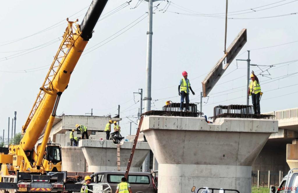 7月23日,在忻府區(qū)小奇村北,由中國(guó)鐵建第十七工程局承建的雄忻高鐵高架橋正在緊張施工中。雄忻高鐵在我市境內(nèi)總長(zhǎng)115公里,預(yù)計(jì)2027年建成通車,將成為忻州聯(lián)通京津冀的戰(zhàn)略通道。 (記者 劉紀(jì)森攝