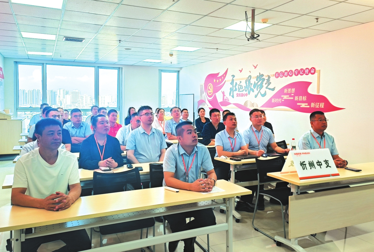 平安財(cái)險(xiǎn)忻州分公司員工觀看紀(jì)念大會(huì)。孫湖英攝