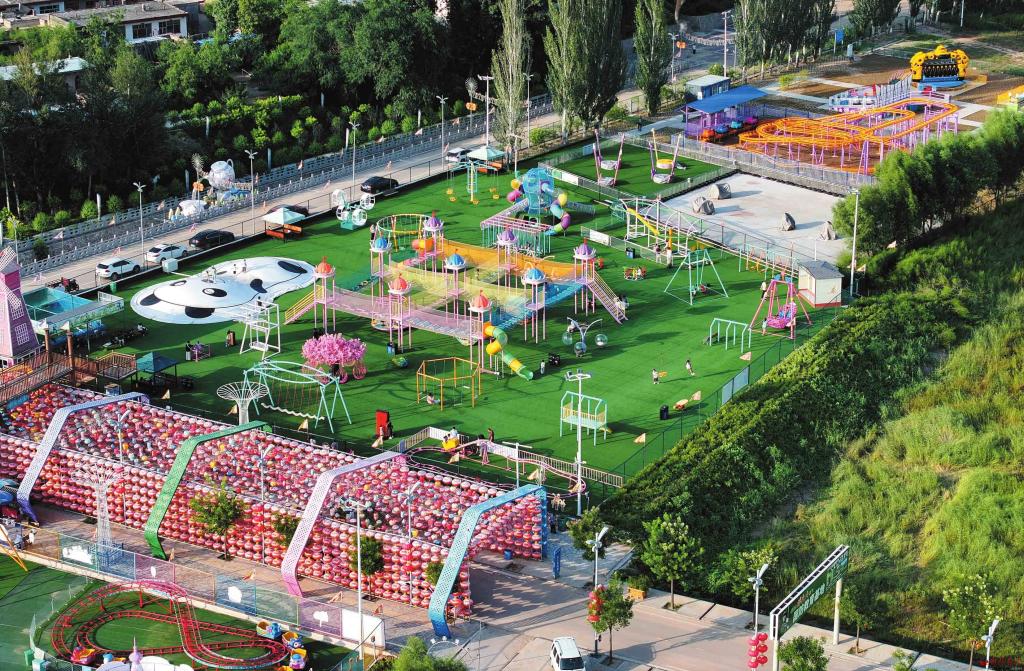 近年來(lái),河曲縣唐家會(huì)村圍繞“宜居宜業(yè)和美鄉(xiāng)村”建設(shè)目標(biāo),通過(guò)農(nóng)旅項(xiàng)目集群化、文化資源品牌化、政策激勵(lì)精準(zhǔn)化等舉措,探索形成了“特色種植支撐旅游、旅游反哺農(nóng)業(yè)品牌、文化激活鄉(xiāng)村美學(xué)”的農(nóng)文旅深度融合發(fā)展之路。圖為村內(nèi)的游樂(lè)園。(馮曉磊攝)