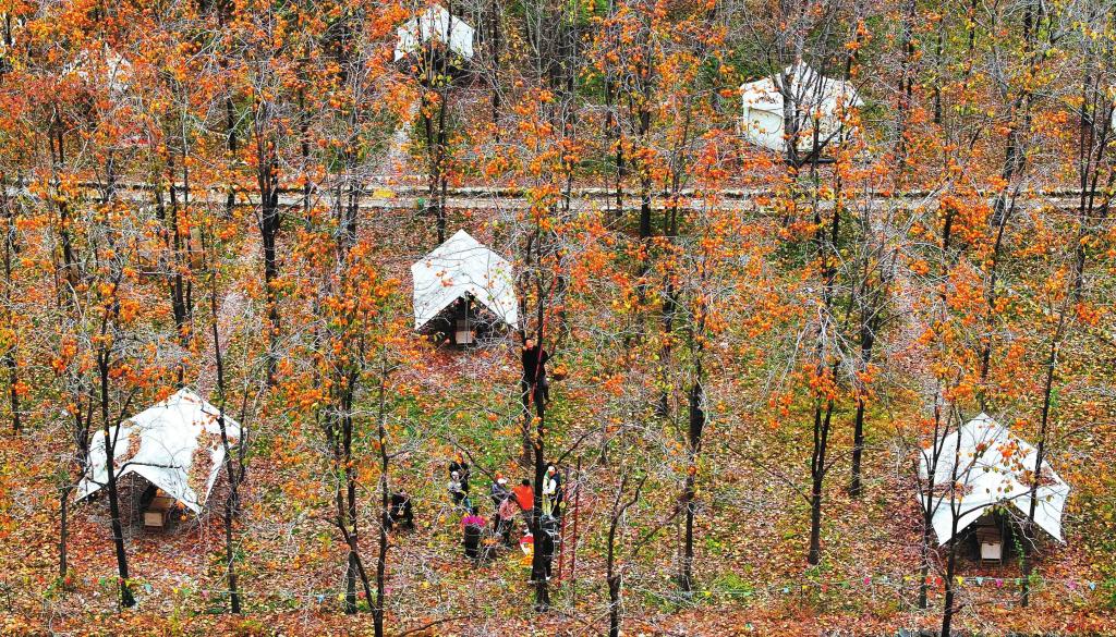 樹(shù)上生產(chǎn)力,樹(shù)下購(gòu)買(mǎi)力。霜降時(shí)節(jié),位于定襄縣東峪自然保護(hù)區(qū)戎家莊的露營(yíng)基地柿林內(nèi),村民忙著在樹(shù)上摘柿子,游客等著在樹(shù)下買(mǎi)柿子,給這個(gè)美麗的秋天,編織出一幅祥和的圖景。(張晉蘭 攝) (責(zé)任編輯:盧相?。?/span> |