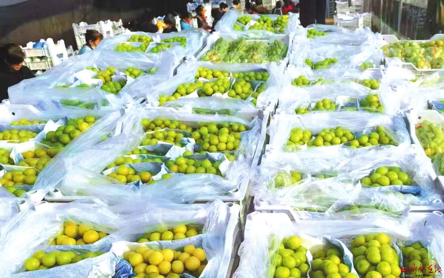 原平市田家莊村陽(yáng)光玫瑰葡萄是當(dāng)?shù)靥厣N植產(chǎn)業(yè)。豐收季,210畝優(yōu)質(zhì)葡萄經(jīng)過(guò)采摘和精細(xì)分揀,便立即送入冷庫(kù)保鮮,隨后通過(guò)冷鏈物流發(fā)往各地市場(chǎng),成為助推鄉(xiāng)村振興的“甜蜜產(chǎn)業(yè)”。圖為工人們正在分揀堆至人高的葡萄。 (記者 范琛攝