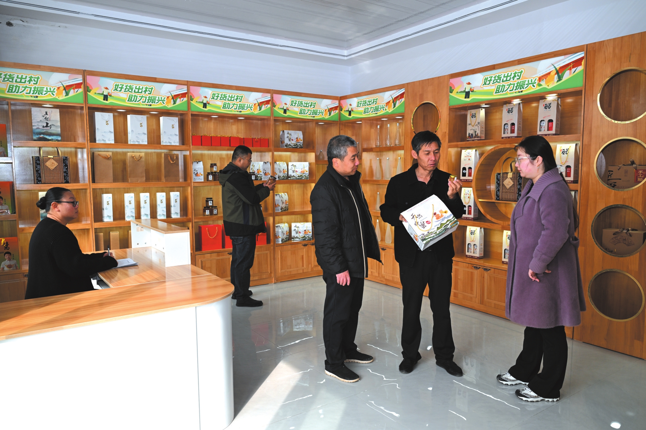 近日,五臺(tái)縣臺(tái)城鎮(zhèn)走馬嶺村農(nóng)產(chǎn)品展示館內(nèi)十分熱鬧,顧客精心挑選本地土特產(chǎn)品。該鎮(zhèn)黨委、政府依托縣城區(qū)位優(yōu)勢(shì),集中全縣6大類(lèi)56種優(yōu)質(zhì)農(nóng)產(chǎn)品入駐展館,線上線下同步推廣。截至目前,展館日均銷(xiāo)售額超6000元,開(kāi)業(yè)5個(gè)月僅“陽(yáng)白蜂蜜”就實(shí)現(xiàn)銷(xiāo)售7.4萬(wàn)元。展館的設(shè)立不僅破解了農(nóng)產(chǎn)品銷(xiāo)路難題,更推動(dòng)特優(yōu)農(nóng)產(chǎn)品向品牌化、市場(chǎng)化轉(zhuǎn)型,為鄉(xiāng)村振興注入新活力。(金俊賢攝)