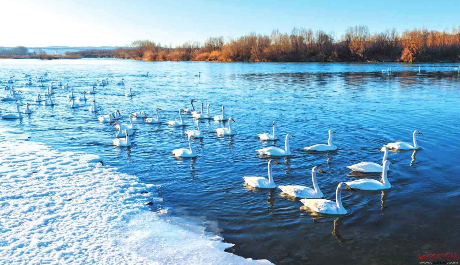 黃河河曲段迎來(lái)了大規(guī)模越冬白天鵝