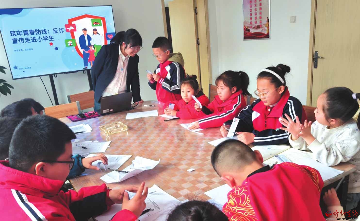 活動還推出“反詐知識家庭包”,引導(dǎo)學(xué)生將反詐技能帶回家,教會長輩防范詐騙。此次活動既守護(hù)青少年安全,也彰顯了企業(yè)社會責(zé)任。圖為反詐中心工作人員與學(xué)生做反詐小游戲。(付文金攝)