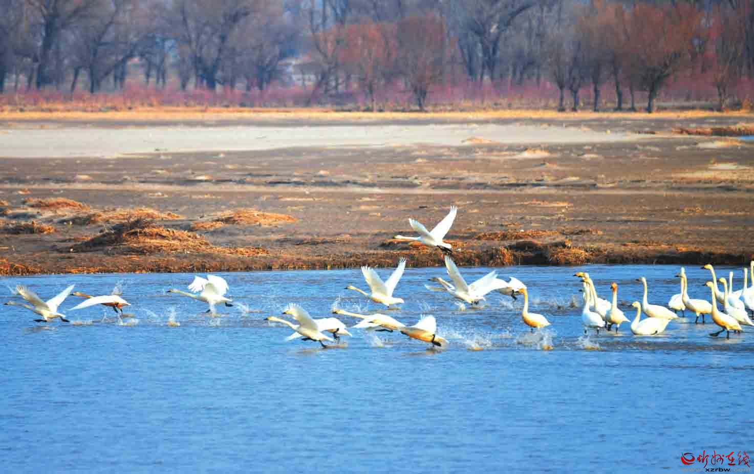 3月初,滹沱河定襄段迎來天鵝回歸。定襄縣滹沱河濕地已連續(xù)六年成為春季候鳥遷徙的重要驛站。(