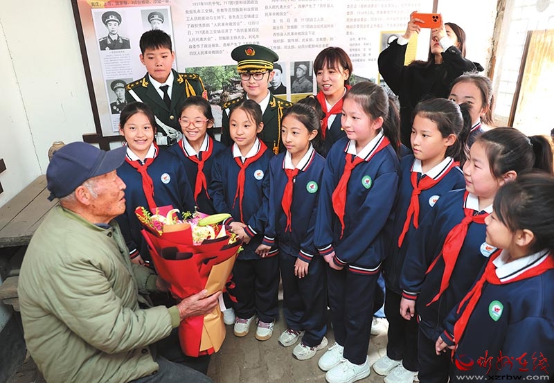 3月27日,忻州市七一路小學(xué)組織黨員、少先隊(duì)員走進(jìn)忻府區(qū)官莊村原忻縣(西)第一個(gè)紅色黨支部官莊黨支部舊址,開(kāi)展“傳承紅色薪火,爭(zhēng)做新時(shí)代好隊(duì)員”主題活動(dòng),追憶崢嶸歲月,感悟革命精神。圖為老兵武三毛給孩子們講述抗戰(zhàn)故事。(記者 張存良攝)