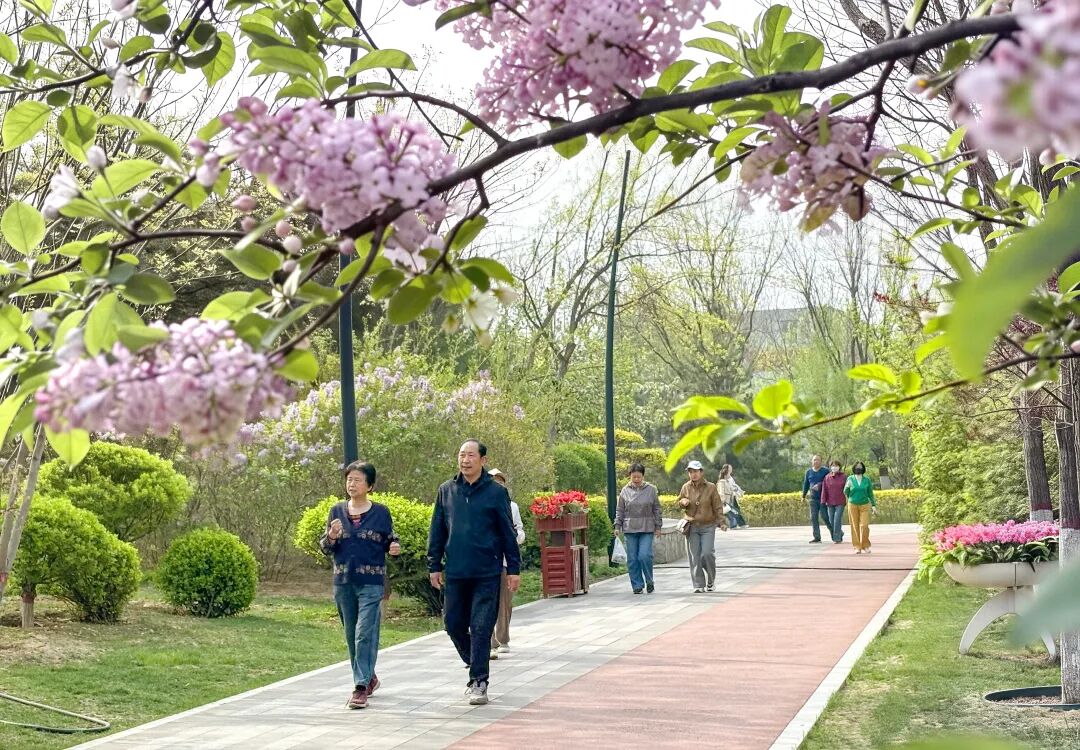 移步城中各大公共空間,更是一步一景:體育公園的桃杏花層層疊疊,迎來(lái)最佳觀賞期,粉白色的花瓣綴滿枝椏,與跑道上奔跑的身影相映成趣;人民公園的玉蘭花、碧桃、西府海棠次第開放,映著湖面的波光,岸邊垂柳抽出新綠,與繁花共同構(gòu)成層次豐富的春日?qǐng)D景;遺山公園里,山桃、丁香香氣彌漫,市民三五成群,沿著步道悠然散步;古城西園的花開得繁盛熱烈,朱紅的古建檐角襯著艷而不俗的花簇,盡顯晉北古城的春日風(fēng)韻;作為城市生態(tài)名片的云中河景區(qū),步道兩側(cè)的繁花映水,偶有水鳥掠過(guò)水面,漾出一岸花影。
