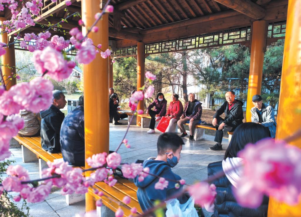 市民漫步遺山公園樂(lè)享春光。范琛攝