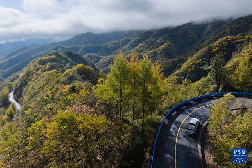 10月30日拍攝的鎮(zhèn)坪縣境內(nèi)化龍山秋日景色(無人機(jī)照片)。(新華社記者 邵瑞 攝)