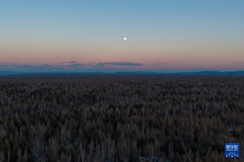這是11月4日拍攝的黑龍江省伊春市豐林縣上空的月亮(無人機(jī)照片)。(新華社記者 謝劍飛 攝)