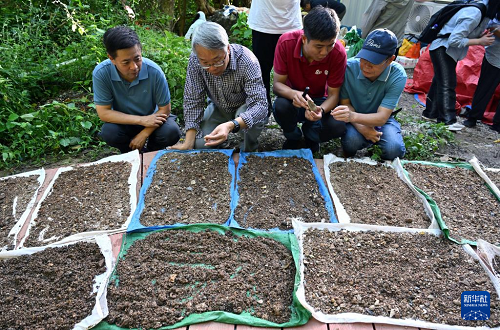 11月8日,考古專家對(duì)三亞落筆洞遺址出土土壤進(jìn)行篩選。(新華社記者 郭程 攝)