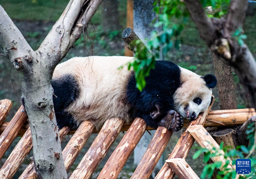 12月22日,入住的大熊貓?jiān)谶m應(yīng)新環(huán)境。(新華社記者 唐奕 攝)