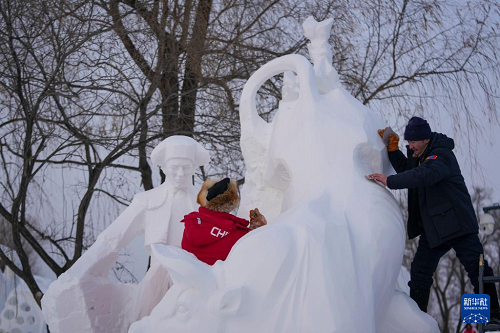 哈爾濱國(guó)際雪雕比賽:“三九”天 露芳容