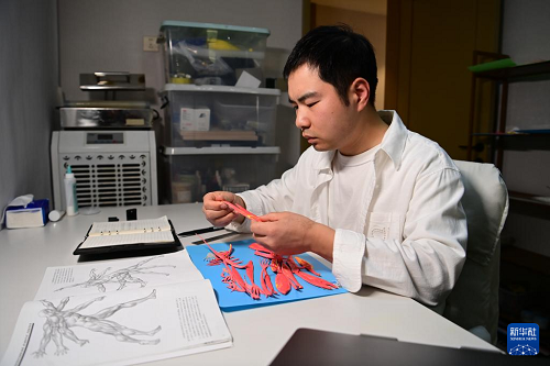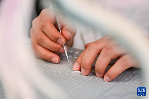 糖藝師張勃在工作室對(duì)比參考書調(diào)整糖藝零部件的尺寸(1月13日攝)。(新華社記者 鄒競(jìng)一 攝)