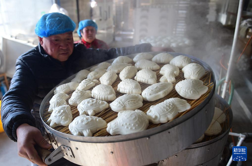 進(jìn)入臘月,河北滄州部分鄉(xiāng)村的面花作坊進(jìn)入生產(chǎn)旺季,人們忙著制作各種形狀的面花供應(yīng)市場(chǎng)。面花是一種用模子塑形加工后蒸制的特色面食,有魚、壽桃、十二生肖等造型,是當(dāng)?shù)卮汗?jié)期間的特色食品,經(jīng)過(guò)揉面、搕花、晾花、蒸花等十多道工序制作而成。