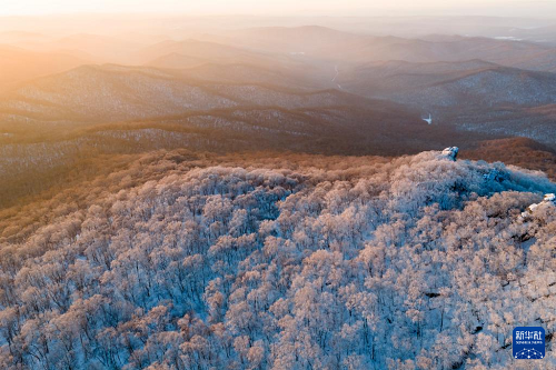 1月25日晨,位于黑龍江省雙鴨山市境內(nèi)的黑龍江七星山國(guó)家森林公園出現(xiàn)霧凇景觀,朝暉映射下,霜華滿山,蔚為壯觀。