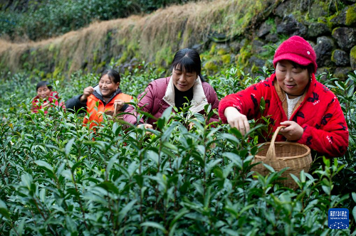 1月29日,三峽庫(kù)區(qū)湖北省宜昌市秭歸縣“絲綿茶1號(hào)”早茶基地開(kāi)園,當(dāng)?shù)夭柁r(nóng)搶采茶葉嫩芽,供應(yīng)春節(jié)市場(chǎng)。湖北秭歸是“中國(guó)絲綿茶之鄉(xiāng)”,近年來(lái),當(dāng)?shù)夭柁r(nóng)和華農(nóng)大科研人員立足本地優(yōu)勢(shì)茶樹(shù)品種,選育并推廣“絲綿茶1號(hào)”特早生茶樹(shù)新品種,助力鄉(xiāng)村產(chǎn)業(yè)振興。