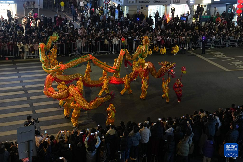 3月3日,浙江省衢州市舉辦“龍騰古城·福滿衢州”舞龍展演活動(dòng),衢州市江山南塢龍?jiān)诨顒?dòng)上巡游展演。(新華社記者 黃宗治 攝)