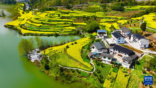 重慶市黔江區(qū)阿蓬江鎮(zhèn)大坪村油菜花開放(3月4日攝,無人機(jī)照片)。(新華社發(fā) 楊敏 攝)