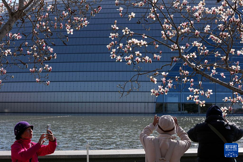 國家大劇院旁玉蘭花盛開(3月9日攝)。(新華社記者 鞠煥宗 攝)
