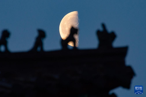 3月11日在黑龍江省哈爾濱市拍攝的月亮。(新華社發(fā) 劉大鵬 攝)