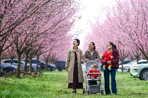 3月11日,游人在西安市鄠邑區(qū)甘河街道丁村梅花種植園內(nèi)賞花。(新華社記者 鄒競(jìng)一 攝)