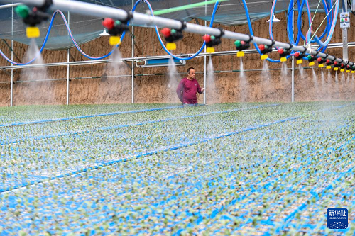 3月18日,山西省運城市夏縣廟前鎮(zhèn)楊村的村民使用噴灌設(shè)備為西瓜苗澆水。(新華社記者 曹陽 攝)