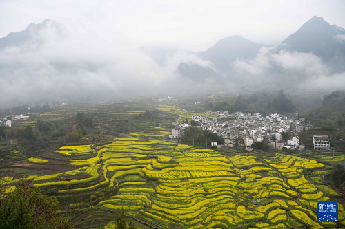 眼下,安徽省宣城市績溪縣家朋鄉(xiāng)幸福村的油菜花田進(jìn)入盛花期,大批游客來此踏青賞花。
