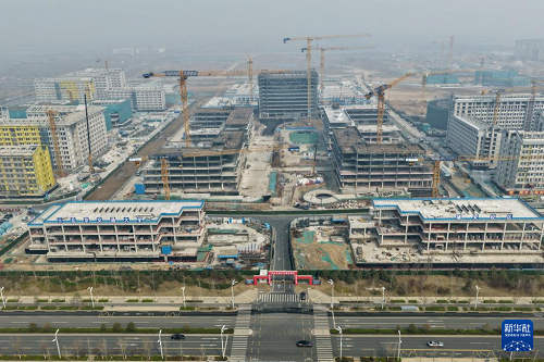 北京科技大學(xué)雄安校區(qū)建設(shè)現(xiàn)場(3月25日攝,無人機(jī)照片)。(新華社記者 牟宇 攝)