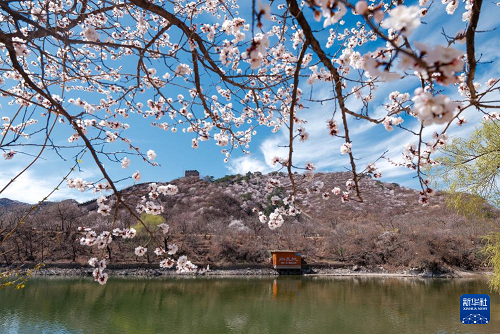 山花掩映的黃花城水長城(4月1日攝)。(新華社記者 陳曄華 攝)