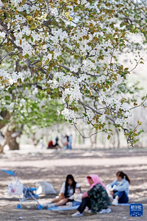 4月6日,游客在南長灘欣賞梨花。(新華社記者 王鵬 攝)