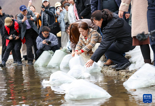 4月15日,吉林省2026年圖們江水生生物資源增殖放流活動(dòng)在琿春市密江河大麻哈魚(yú)國(guó)家級(jí)水產(chǎn)種質(zhì)資源保護(hù)區(qū)舉行,共放流大麻哈魚(yú)52萬(wàn)尾、馬蘇大麻哈魚(yú)8萬(wàn)尾。魚(yú)苗均經(jīng)嚴(yán)格檢疫、計(jì)數(shù),并由公證機(jī)構(gòu)現(xiàn)場(chǎng)公證。