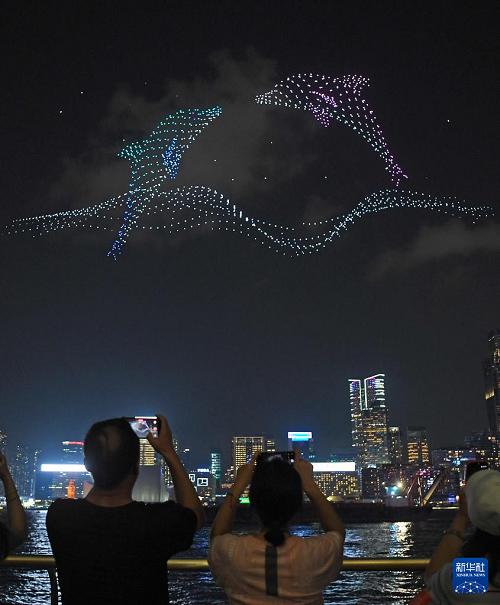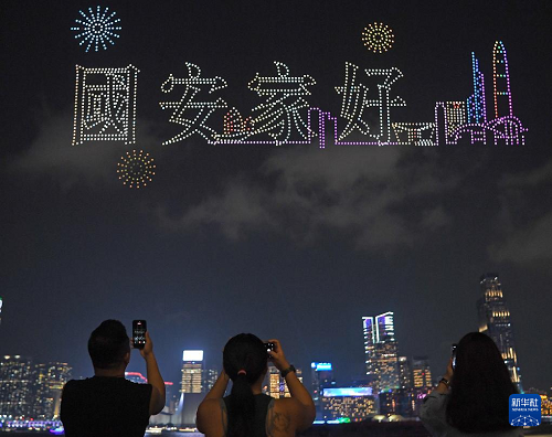全民國(guó)家安全教育日大型無(wú)人機(jī)表演點(diǎn)亮香港夜空
