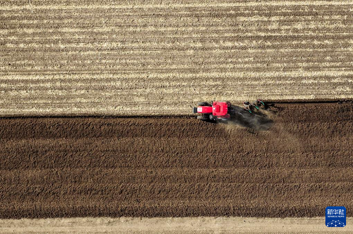 4月19日,在通遼市科爾沁左翼后旗甘旗卡鎮(zhèn),農(nóng)機(jī)手駕駛農(nóng)機(jī)翻地。(新華社記者 連振 攝)