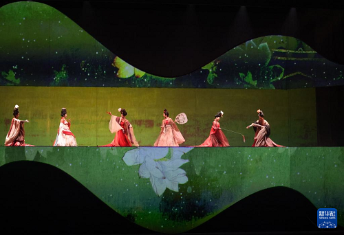 在遼寧大劇院拍攝的《古色·國寶遼寧》演出現(xiàn)場(4月19日攝)。(新華社記者 李鋼 攝)