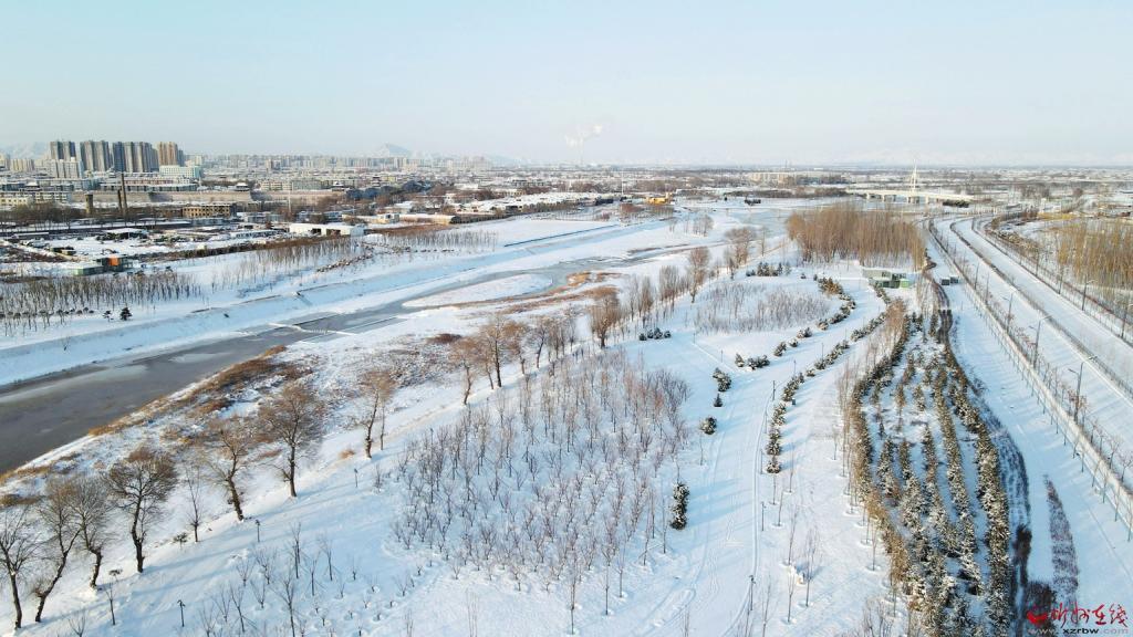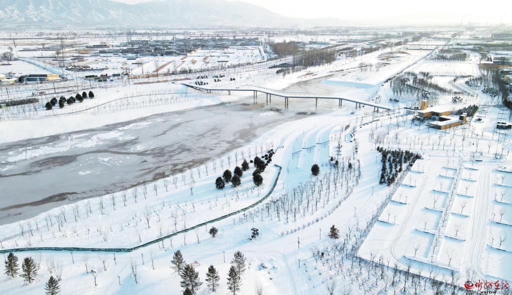 雪后的牧馬河生態(tài)公園,在白雪的覆蓋下,若隱若現,美不勝收。(