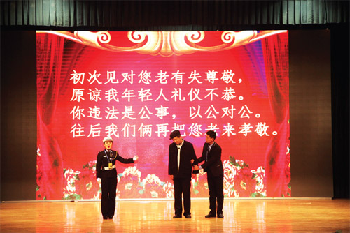 說起這支交通安全宣傳隊(duì),應(yīng)該先說說偏關(guān)縣公安局交警大隊(duì)副大隊(duì)長(zhǎng)白元海,年近六十的他,一頭白發(fā),身體硬朗。在宣傳隊(duì)里他既是導(dǎo)演,又是編劇。他自稱“才疏學(xué)淺”,但從他的作品中可以感受到對(duì)群眾的那份真情實(shí)感。他心中只有一個(gè)愿望,那就是出行平安!記者采訪白元海時(shí),他特意將劇本《祭夫》拿給記者看。他說,這一劇本雖然“悲”、“苦”,但是特別有教育意義。丈夫因酒后駕車釀出車禍身亡,妻子上墳祭奠亡夫,既恨又愛,心中無限糾結(jié)。對(duì)于家庭來說,丈夫是頂梁柱,失去了丈夫,就是失去家庭,這個(gè)天就塌下來了。 “哎呀呀我的那個(gè)夫,你一生奮斗三十春,性命就丟在喝酒中,到頭來落了一場(chǎng)空。開車不喝酒;喝酒不開車,可憐的夫啊,你本應(yīng)牢牢記心中。今日清明節(jié)我來上墳,為妻我陪你喝個(gè)醉,有來生你開車別再動(dòng)酒盅?!边@是自編節(jié)目《祭夫》中的臺(tái)詞,前幾次演出時(shí)臺(tái)上演員萬般悲切的哭唱,舞臺(tái)下千名觀眾鴉雀無聲,錐子般刺痛了觀者的心,讓不少觀眾淚灑衣襟,其凄美的曲調(diào)源自當(dāng)?shù)亓餍械摹缎」褘D上墳》。演出《祭夫》的是文藝宣傳隊(duì)的“臺(tái)柱子”蒙琴琴,她端莊溫雅,唱腔頗有專業(yè)水準(zhǔn)。她曾在山西電視臺(tái)《走進(jìn)大戲臺(tái)》節(jié)目中獲得亞軍。 演員王寶龍擅長(zhǎng)晉劇和北路梆子,他表演的小品《好心人“牛二”》給十里八鄉(xiāng)的人們留下了深刻的印象。“牛二”唱了起來:“哎,那天趕廟會(huì),好心拉了一車人,車無證、人無證,牛角坡上剎車失了靈,三輪車不由人,一車人摔下了崖,我毀了兩個(gè)家庭,家里攢的、借的錢還不夠,老婆到處借錢,不能回家?!边@些唱詞,通俗易懂,村民看表演時(shí),潛移默化中受到了教育。 高麗英,民歌、流行歌曲樣樣能來,一曲《喜歡你》與學(xué)生們產(chǎn)生了共鳴,全場(chǎng)呼應(yīng)起來,一曲《走西口》再現(xiàn)了黃河古渡口“哥哥”、“妹妹”背景離鄉(xiāng),柔情寸斷的一幕幕。演員高新一首信天游《拉手手親口口》道出了黃河兒女情長(zhǎng)。主持人白玉婷、范文強(qiáng),親力親為鉆研主持串詞,目的就是讓觀眾在愉快中感受到他們團(tuán)隊(duì)的心意。宣傳隊(duì)的演出節(jié)目把北路梆子、二人臺(tái)、民歌、雙簧、快板等一系列極具地域文化特色的地方小戲匯聚在一起,說唱歌舞,構(gòu)成了色香味俱全的百姓精神大餐。所到之處,迅速形成了交安宣傳的颶風(fēng),掌聲之后,發(fā)人深省。節(jié)目從實(shí)際出發(fā),以增強(qiáng)交通安全意識(shí)、豐富群眾文化生活為目的,用演員的傾情演繹將交通安全的方方面面展現(xiàn)在大家面前,廣泛傳播現(xiàn)代交通法制理念、交通安全文化和交通安全知識(shí),倡導(dǎo)文明出行,針對(duì)性、趣味性、藝術(shù)性和觀賞性強(qiáng),宣傳教育極具實(shí)效。 今年在春運(yùn)時(shí)期,我市公安交警組織文藝巡演活動(dòng),內(nèi)容上著重推出察民情、訪民意、親民心,介紹了交通警察在路面執(zhí)勤和事故處理工作中的艱辛,展示交通警察公正執(zhí)法和熱情服務(wù)的一面,讓群眾更加理解和支持交警部門的工作,演職人員與基層群眾廣泛接觸,大力開展以“事故處理程序規(guī)定、出行安全常識(shí)、事故防范要點(diǎn)、近年來發(fā)生的交通事故案例”等為主的知識(shí)宣傳,讓交通安全常識(shí)和事故防范知識(shí)送進(jìn)千家萬戶,進(jìn)一步拉近了交通警察與人民群眾的距離,促進(jìn)了和諧警民關(guān)系的構(gòu)建。通過群眾喜聞樂見的文藝節(jié)目,用特色宣傳扎實(shí)推進(jìn)實(shí)施“文明交通行動(dòng)計(jì)劃”,創(chuàng)新思路,開啟了我市春運(yùn)工作新篇章,助推了春運(yùn)的高潮。(王國棟 張志遠(yuǎn) 馮 鑫) (責(zé)任編輯:盧相汀) |
