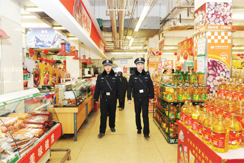 對商場、超市等人群密集場所進行重點防控 本報訊根據(jù)公安部和省公安廳的統(tǒng)一安排部署,為確保春節(jié)期間社會治安平穩(wěn)有序,為廣大人民群眾歡度春節(jié)創(chuàng)造良好的社會治安環(huán)境,市公安局高度重視,科學(xué)部署,合理安排,按照以面保點、整體防控的思路,重點防控、源頭穩(wěn)控的原則,全警動員、全力以赴,扎實推進安保工作的有序開展。在春節(jié)期間,未發(fā)生影響嚴重的刑事案件和治安案件,全市社會治安大局持續(xù)穩(wěn)定。 為確保春節(jié)期間我市社會治安穩(wěn)定,市公安機關(guān)全力加強社會面的管控工作。全面推行全時流動警務(wù)、“警車亮燈”、公安與武警武裝聯(lián)勤等巡防模式,科學(xué)調(diào)整警力部署,最大限度屯警街面,增強對重點路段、時段的巡邏頻次和密度,加大便衣巡防力量的投入,有效地擠壓了街面違法犯罪活動空間;市公安局巡特警支隊開展了春節(jié)期間武裝巡邏防控工作,加大對社會面的巡邏力度,提高對城區(qū)主要街道、案件高發(fā)路段、居民區(qū)、交通樞紐、繁華商業(yè)區(qū)、金融網(wǎng)點等易發(fā)案地區(qū)的巡邏力度,及時消除各類影響穩(wěn)定的苗頭。治安部門加強了對轄區(qū)流動人口和中小旅店、出租房屋、洗浴場所、網(wǎng)吧等重點部位的清查整治,堅決消除各類隱患,嚴厲打擊“黃賭毒”等違法犯罪活動,進一步凈化社會風(fēng)氣,努力營造良好的社會治安環(huán)境。