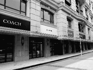 昨日,北京晨報記者來到位于建國門橋附近的中海楓丹公館,看到整個樓盤有五棟樓,呈凹字形。建筑物四周設(shè)有30多個大小不一的底商,每個底商頂部都掛著一個看似國際大牌的招牌,既有奢侈品,也有快餐業(yè),顏色鮮艷,十分奪目。就在這些大牌的招牌旁邊,張貼著大幅廣告“黃金旺鋪火爆招商中”。