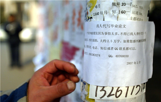 校園里,一則代寫論文的廣告。視覺中國供圖
