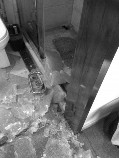 酒店衛(wèi)生間玻璃門(mén)破碎。當(dāng)事人供圖