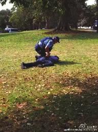 一名目擊導(dǎo)游說(shuō):“剛才有兩個(gè)客人在悉尼草坪上方便,讓警察看見了。警察追他們,他們提著褲子跑。他們惱羞成怒,要打警察。警察一個(gè)過肩摔,把一個(gè)男的摔地上骨折了。現(xiàn)在救護(hù)車,警車都過來(lái)了?!?/p>