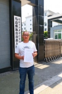 5月27日宣判無(wú)罪后,朱晉川在馬邊縣法院外留影。華西都市報(bào)-封面新聞?dòng)浾叨?受訪者供圖