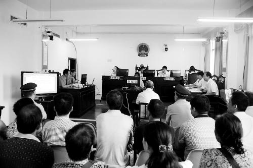 西峽縣法院開(kāi)庭審判楊振浩(中) 汪宇堂 張宇攝
