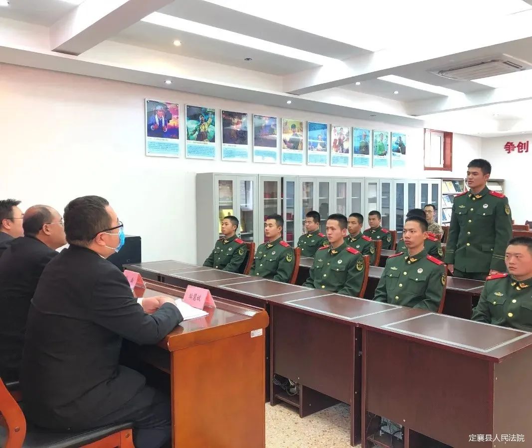 為切實(shí)提高部隊(duì)官兵依法維權(quán)的意識和能力,近日,定襄法院派出法官干警前往定襄縣武警中隊(duì)開展“送法進(jìn)軍營”活動(dòng),為武警官兵們送去法律關(guān)懷,提供司法服務(wù)。