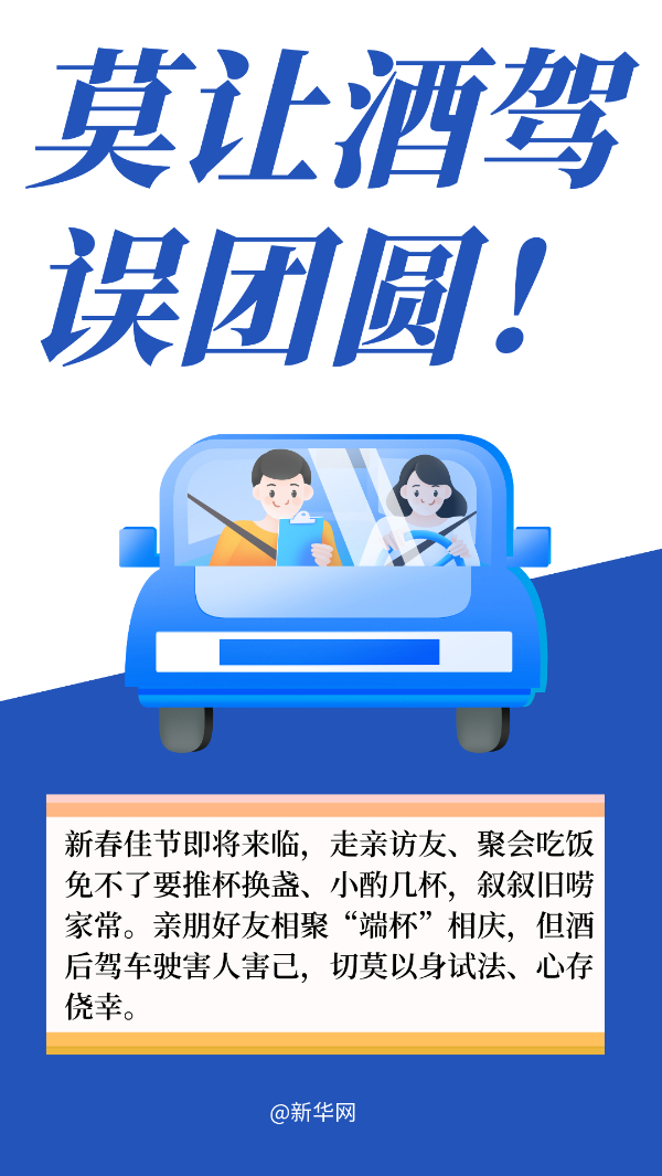 三、酒后駕駛要不得。春節(jié)期間走親訪友,免不了喝酒助興,觥籌交錯間一定要切記不能酒后駕駛機動車:根據國家監(jiān)督檢驗檢疫局發(fā)布的《車輛駕駛人員血液、呼氣酒精含量閾值與檢驗》,血液中的酒精含量大于或者等于20mg/100ml就屬于飲酒駕車,大于或者等于80mg/100ml就屬于醉酒駕車。?